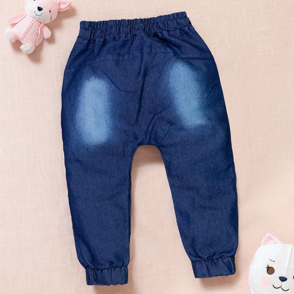 Aproveite o estilo e o conforto da Calça Jeans Jogger para Bebê da Era Uma Vez! Compre agora e dê à sua pequena um visual irresistível.