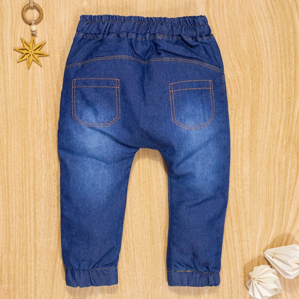 Calça Para Bebê Jeans Jogger Bolsinho Bordado Azul Escuro