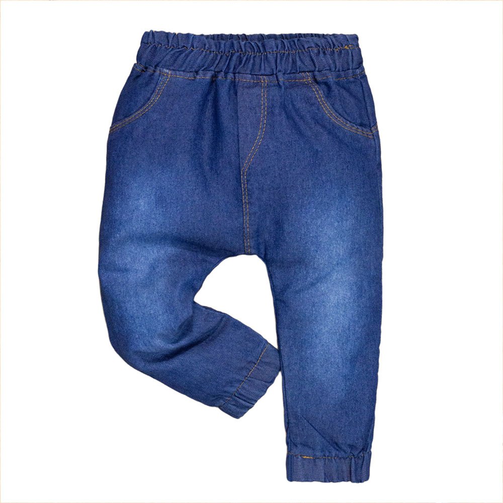 Calça confeccionada em tecido jeans super macio e molinho, confortável e que não limita os movimentos do bebê! Modelagem Jogger, super estilosa, com elástico na barra e no cós. Possui um lindo bordado de bolso no bumbum para dar um toque especial, além de recortes e costuras que deixam o caimento perfeito.