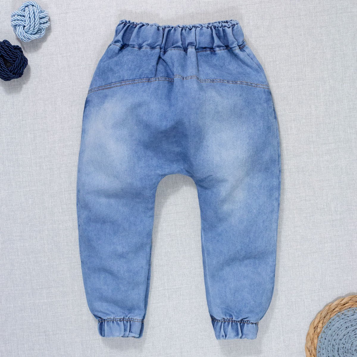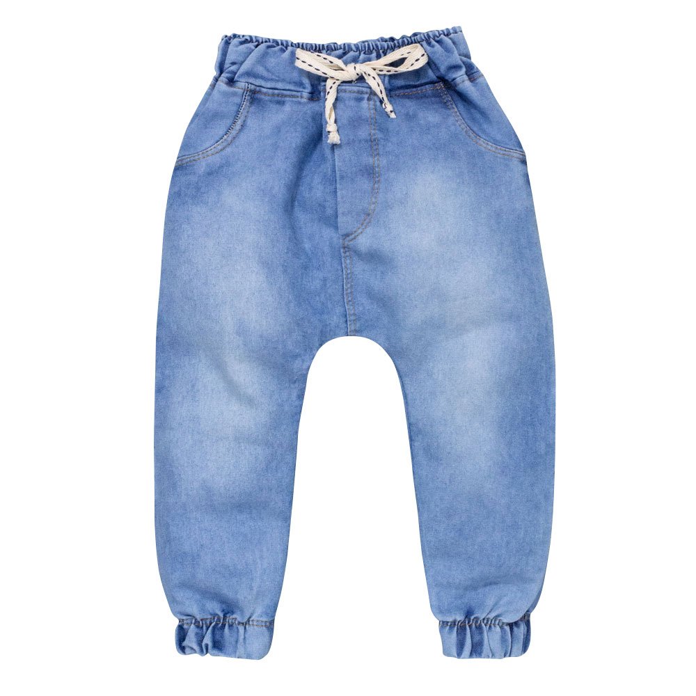 Calça Para Bebê Jeans Jogger Cordão Tracejado Azul Claro