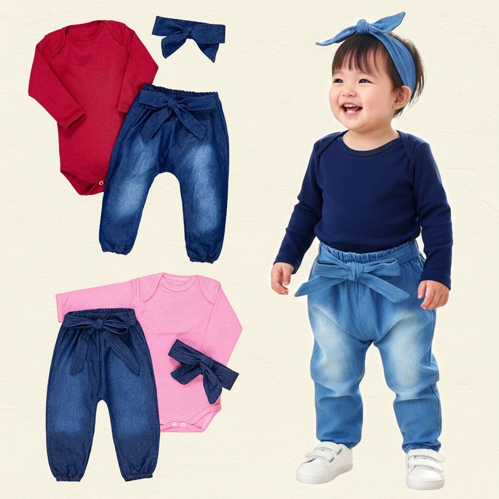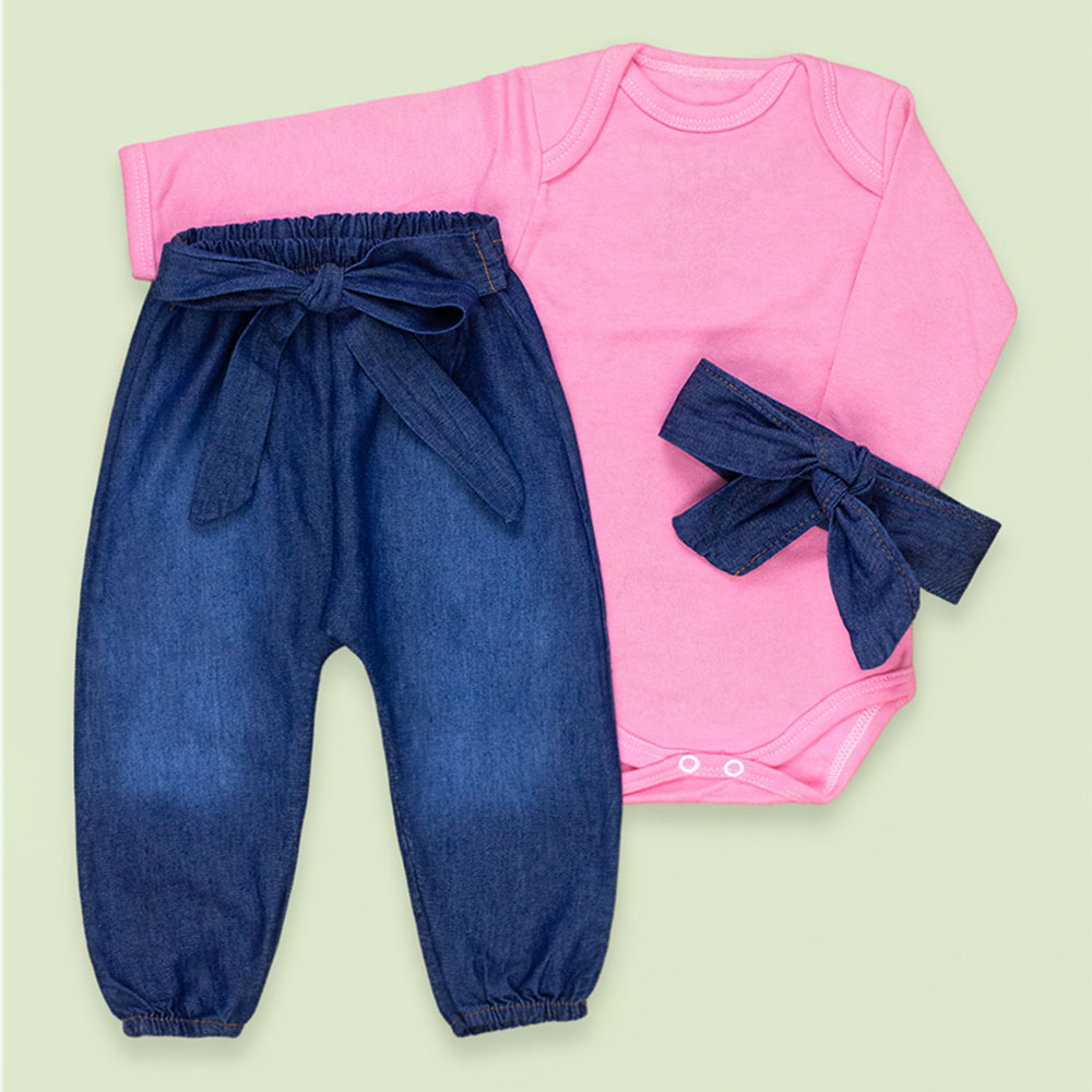 O Conjunto para Bebê Body e Calça Jeans com Faixinha é perfeito para proporcionar conforto e estilo para sua babay.